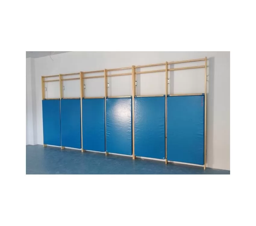 Protección de la espaldera, para evitar golpes frotales y los posibles accesos de cualquier parte del cuerpo entre las barras paralelas de la espaldera.