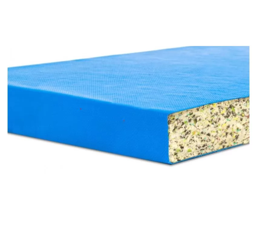 Fabricada con aglomerado de alta densidad, aportando rigidez y elasticidad. Pegadas en la parte superior y laterales o en todo el tatami con tejido técnico impermeable, 100% PES recubierta en PVC para dar más resistencia, suavidad y durabilidad.
